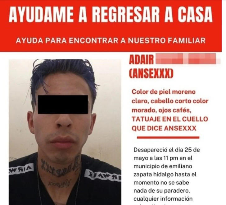 Adair y Yessica tenían reporte de desaparición desde el pasado 25 de mayo en el estado de Hidalgo, sin embargo su búsqueda terminó, después de diversos bloqueos y una exhausta campaña de búsqueda realizada por familiares y amigos, ya que fueron hallados pero no como ellos hubieran querido, pues los dos fueron localizados sin vida en diferentes puntos del municipio de Emiliano Zapata.
