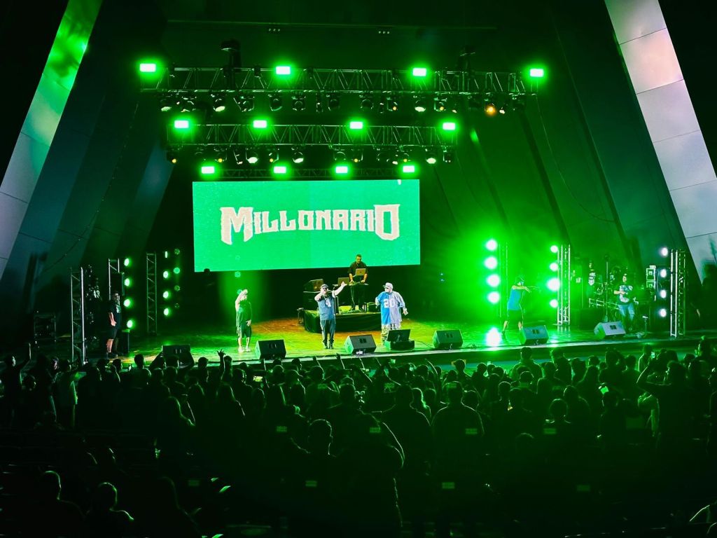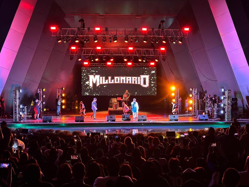 Una noche llena de rap y música urbana se vivió este viernes en el Teatro de la Ciudad del parque Tangamanga I, con la presentación de Millonario e invitados especiales como Big Man, Pablito Calavera y Jijoe7, Phyzh Eyer, quienes hicieron cantar y brincar con energía y entusiasmo al público.