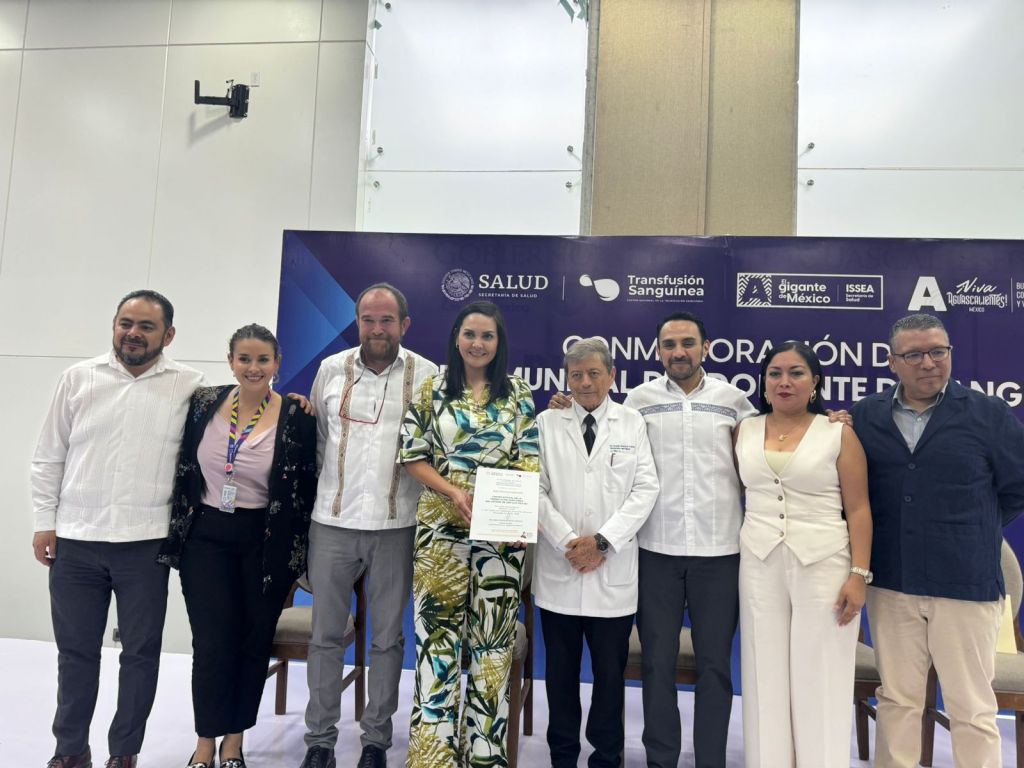 En el evento realizado en Aguascalientes, en representación del Gobernador del Estado Ricardo Gallardo Cardona, la titular de la Secretaría de Salud, Ymuri Vaca Ávila, recibió la distinción y manifestó que el esfuerzo que le fue reconocido a la Entidad se debe a la generosidad de cada p que acude a donar sangre de manera voluntaria.