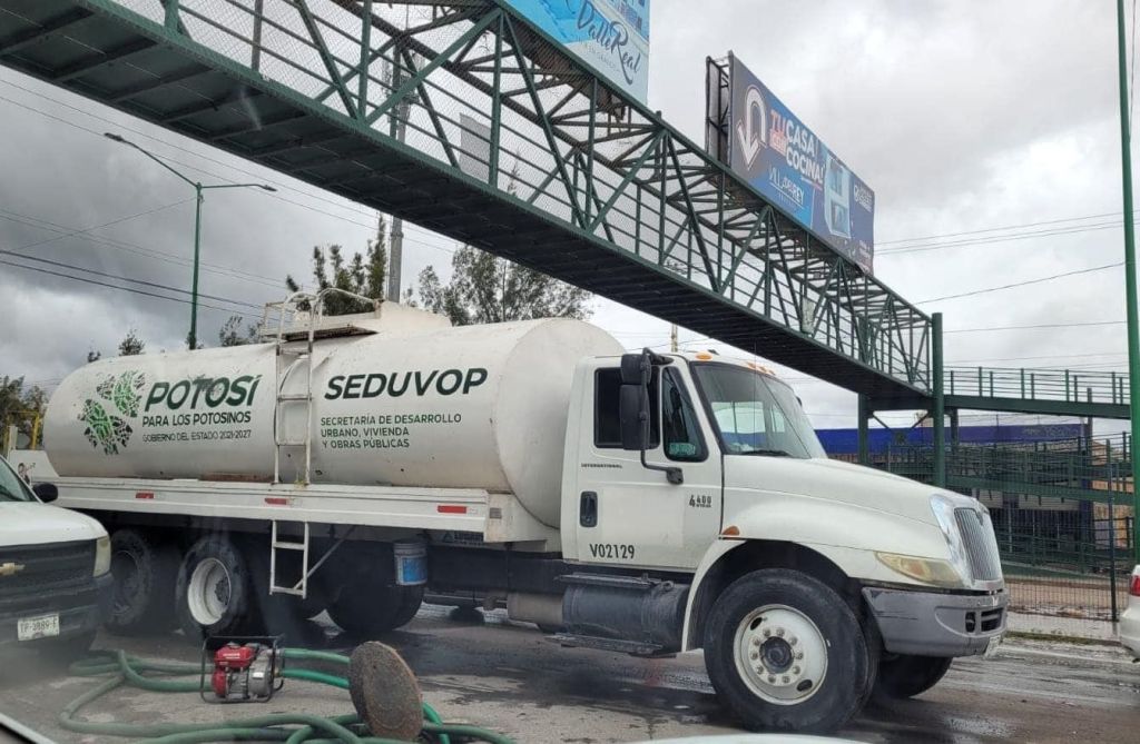 La Secretaría de Desarrollo Urbano, Vivienda y Obras Públicas (Seduvop), coordina acciones de limpieza en alcantarillas, desazolve y retiro de objetos sólidos que obstaculicen el libre flujo de agua pluvial por el sistema de alcantarillado, derivado de las lluvias por la depresión tropical “Alberto”, en apoyo a las y los potosinos y con ayuda de dependencias de Protección Civil.