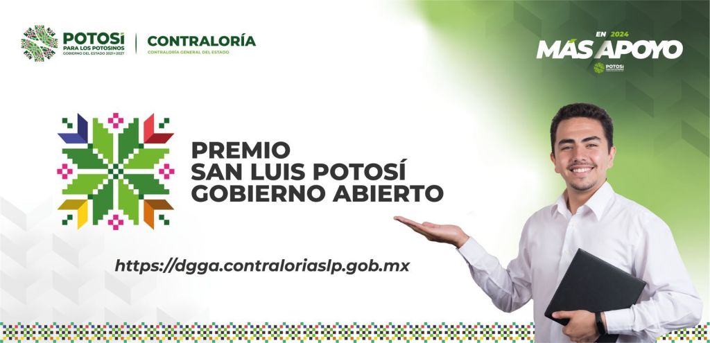Para generar condiciones de diálogo con la ciudadanía que asegure una mejora en los servicios en apoyo a las y los potosinos, la Contraloría General del Estado (CGE), lanzó la convocatoria del “Premio San Luis Potosí de Gobierno Abierto 2024”, que reconoce las iniciativas de la sociedad civil y entidades de la administración pública estatal, en la simplificación de trámites, soluciones a problemáticas sociales, participación ciudadana, transparencia y rendición de cuentas.