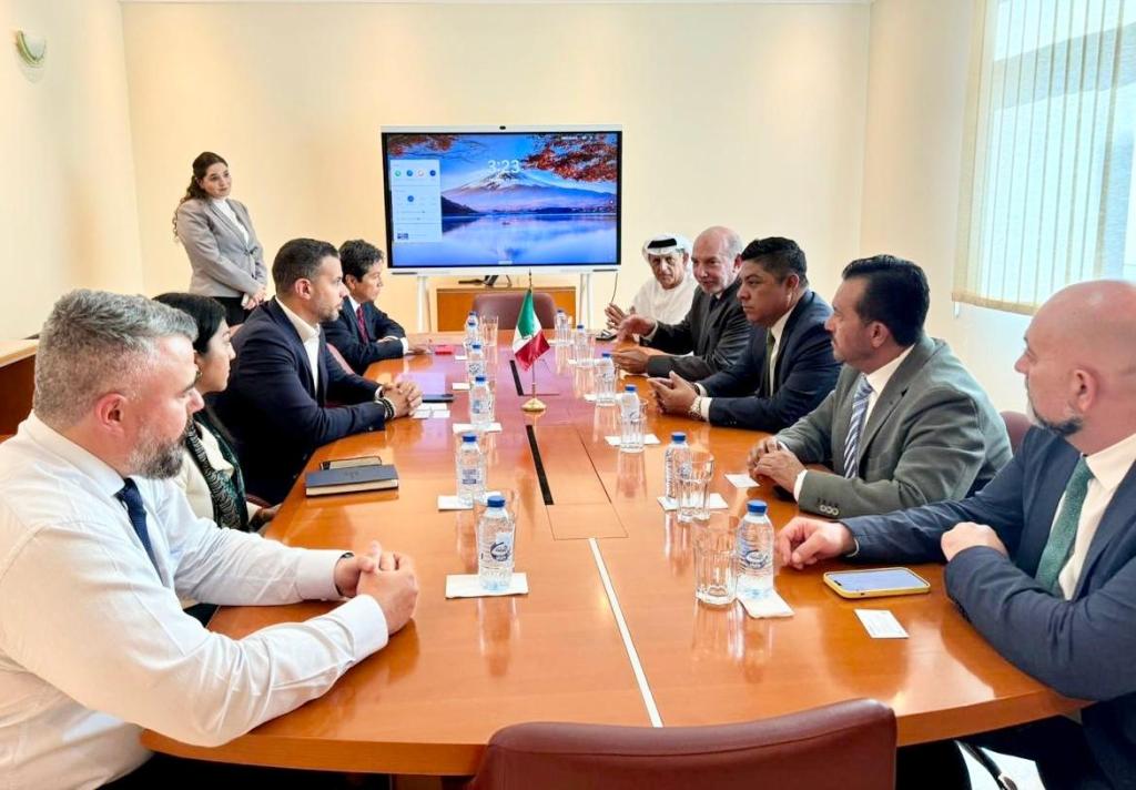 El Gobernador de San Luis Potosí, Ricardo Gallardo Cardona, sostuvo una reunión con integrantes del Consejo Empresarial de Emiratos Árabes Unidos (EAU), para consolidar nuevos mercados y oportunidades de negocio, a productos potosinos, especialmente de la industria vitivinícola y de bebidas tradicionales, con lo que se podrá incrementar el comercio e incrementar las exportaciones en apoyo directo a las familias potosinas.
