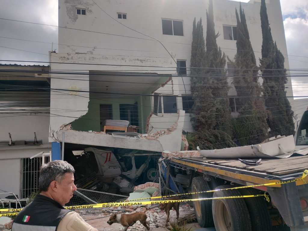 La Coordinación Estatal de Protección Civil (CEPC) en conjunto con bomberos metropolitanos, elementos de protección civil y de la policía municipal, y Guardia Civil Estatal, atendieron un accidente de tránsito en la lateral de la Carretera 57 a la altura del fraccionamiento Orquídea, donde un vehículo pesado impactó contra una vivienda y derribó dos habitaciones.
