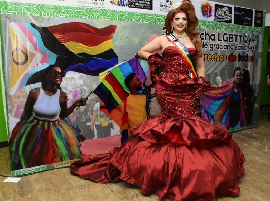 En una ceremonia para visibilizar y respaldar en su lucha por la igualdad y la no discriminación de la comunidad #LGBTTTIQ+, celebrada la noche de este jueves en el Auditorio Municipal, Denisse Pereira fue elegida como la reina y embajadora de la tercera Marcha por la diversidad sexual que se llevará a cabo el próximo 13 de julio en Soledad de Graciano Sánchez.