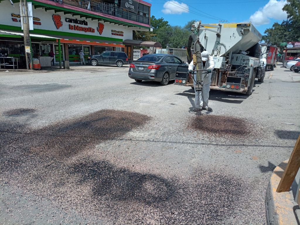 En Camino a Santa Rita, una de las de mayor afluencia vehicular y considerada de las vías principales en la Delegación; se atendieron los daños severos en la superficie, desde la avenida San Francisco al crucero de Calle 24 de Febrero y Lago de Chapala, con trabajos con material de mezcla asfáltica y la máquina jetpatcher para una reparación fuerte y duradera.
