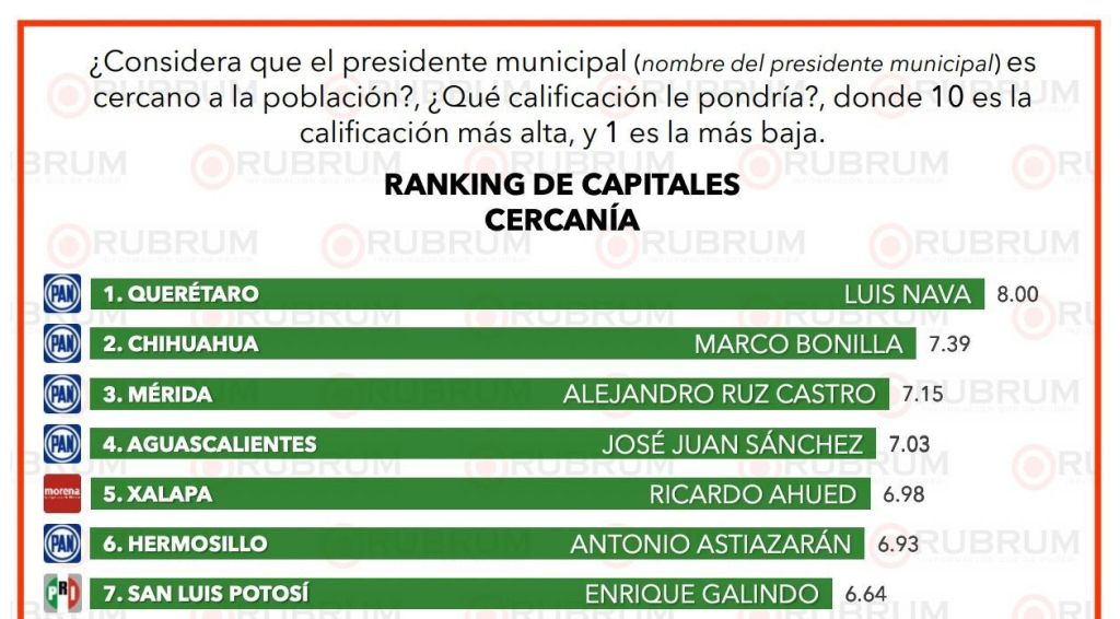 En el ranking de cercanía del Presidente Municipal con la población, el Alcalde potosino Enrique Galindo Ceballos se colocó en séptimo lugar, con 6.64 puntos.