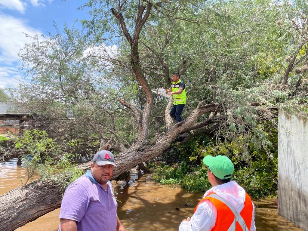 En ese sentido, las direcciones del Ayuntamiento se desplegaron en las comunidades de Socavón, Las Rusias, Guadiana, Rosario, Ventilla, así como las colonias de cabecera colindantes al río, San Benito, Cahuile y San Ignacio, donde el acceso se restringió ante la electrificaión de árboles y del encharcamiento, por lo cual las autoridades reiteraron que la ciudadanía tenga la máxima precaución y eviten salir si no es absolutamente necesario; asimismo, se planteó evitar los cauces y la presa de Calderón, que también podrá generar desagüe de excedentes.