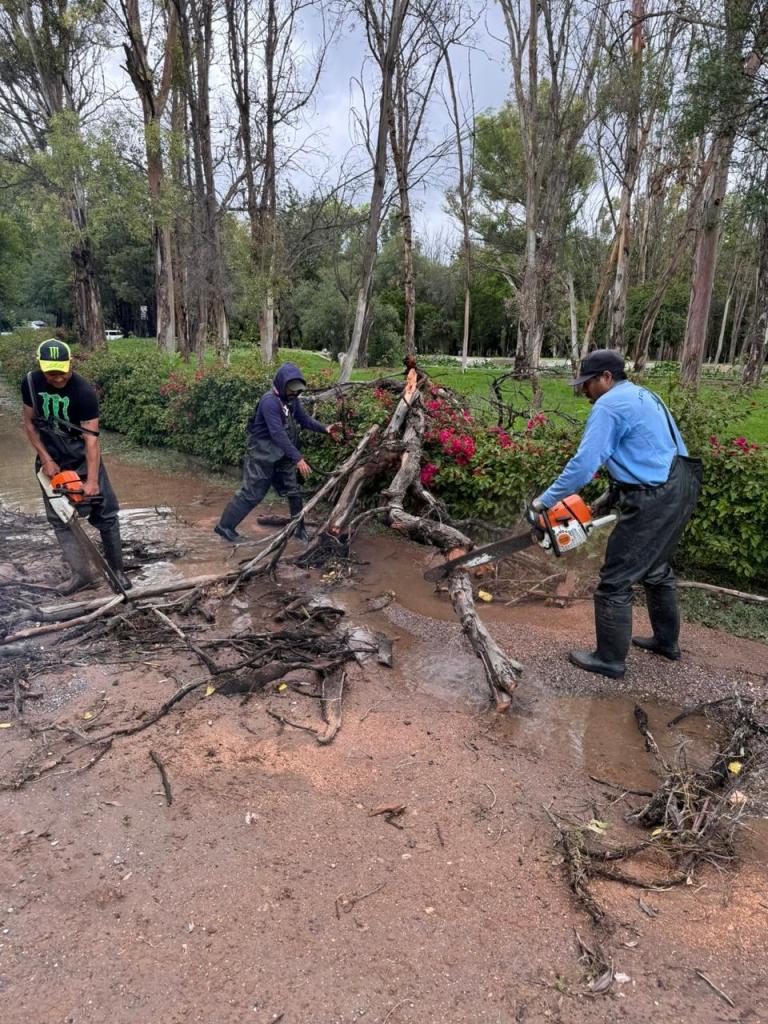 Debido a las fuertes lluvias que se registraron en San Luis Potosí, los parques Tangamanga I y II, registraron caídas de árboles, ramas y hojas, por lo que el personal fortaleció las acciones de limpieza de basura, y escombros, barrido y lavado de vialidades y desazolve en alcantarillas, además del desfogue controlado de los lagos captadores de agua, en apoyo a miles de personas usuarias.