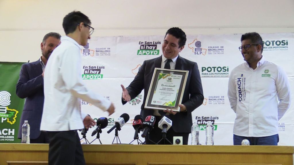 El titular del COBACH señaló que en más de 22 años no salió un joven a participar a un certamen internacional de matemáticas, es la primera vez que se obtiene una presa de forma internacional para lo que es el estado potosino, además destacó el reconocimiento del tercer lugar en China en el campamento de preparación, también mencionó que los sueños se van cumpliendo se alcanzan, pero hay que irse preparando día con día ya que no es nada más una ocurrencia de que hoy me levanté con el ánimo de hacerlo y mañana se cansa.