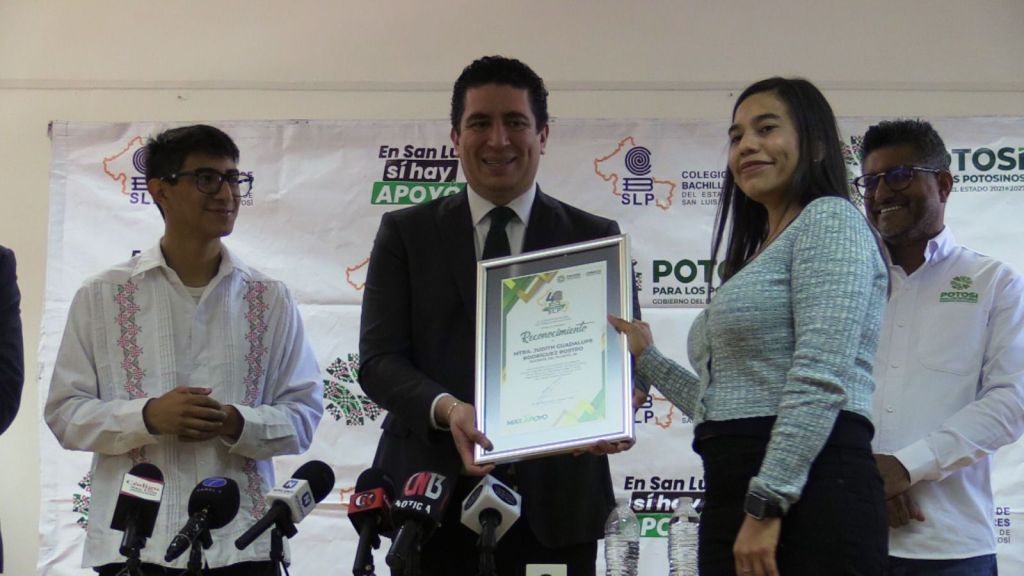 El Colegio de Bachilleres de San Luis Potosí entregó el reconocimiento José Andrés Zamora Moncada medallista en la 65 olimpiada internacional de matemáticas 2024, realizada en Inglaterra, José Andrés Zamora es el primer potosino que logra esta presea a nivel internacional es un es un ejemplo de dedicación y disciplina.