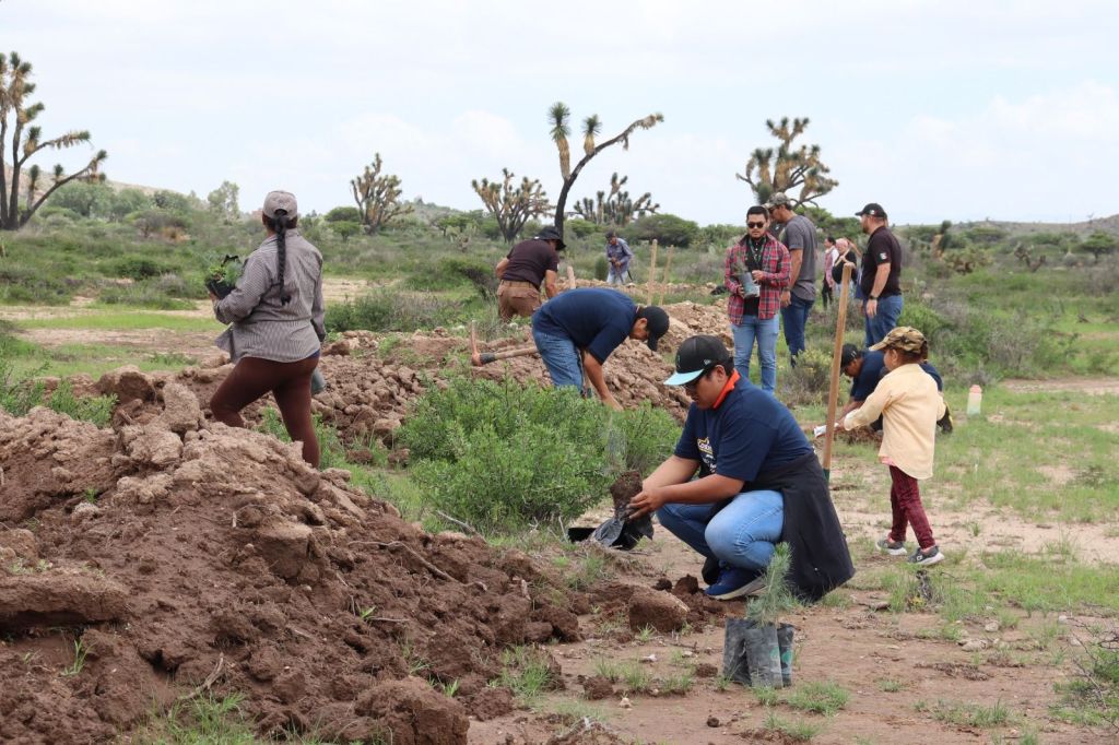 Con la jornada de reforestación se lograron sembrar más de 600 árboles de especies de pino y mezquite, que ayudarán a la recuperación de la zona afectada por la extrema sequía que se padeció durante tres años y que con las lluvias ha logrado una recuperación.