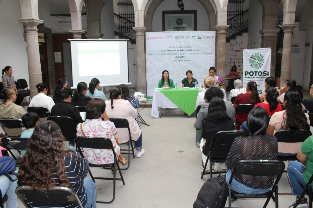 Acompañada por más de 30 mujeres que representan diversos sectores de la sociedad civil, de Redes Mujeres Constructoras de Paz, e integrantes de Contraloría Social de los diferentes programas federales, Serrato Sánchez dijo que la Ley General de acceso de las Mujeres a una Vida Libre de Violencia, ha tenido cambios sustanciales en lo referente a la AVGM, por lo que permite la actualización o levantamiento en las entidades federativas que cumplan sus medidas, como fue el caso de San Luis Potosí.