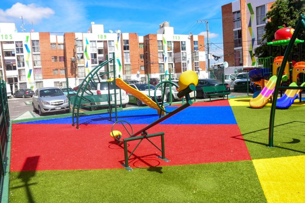 Además, la intervención contempló la rehabilitación de la cancha de usos múltiples y el área de juegos infantiles, así como la habilitación de un espacio destinado a gimnasios al aire libre; las banquetas, guarniciones y áreas verdes fueron remodeladas para ofrecer un entorno más seguro y atractivo para las y los residentes.