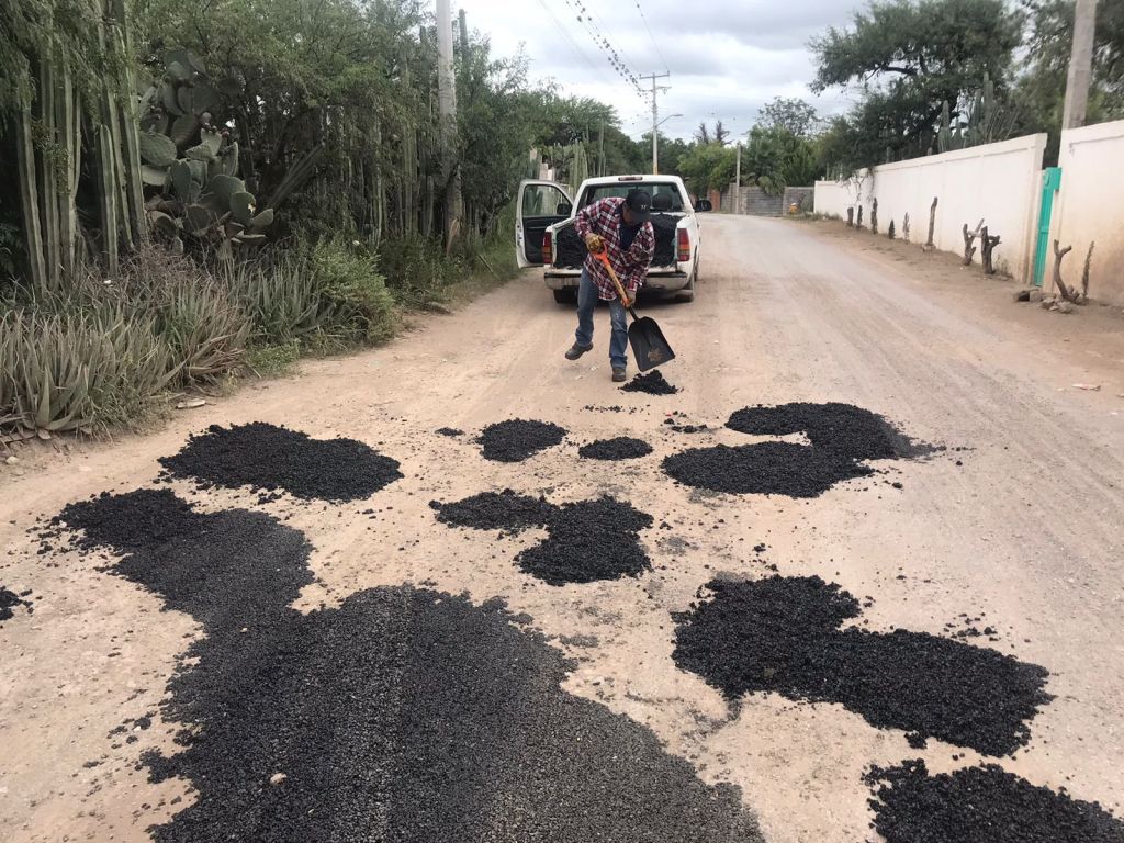 -A la par, se mantiene el programa de bacheo en el camino que conecta la cabecera delegacional con Peñasco