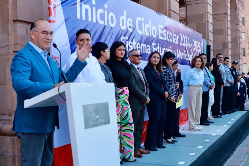 En la Plaza de Armas, con la presencia de estudiantes del Sistema Municipal de Educación, el Alcalde de la Capital de San Luis Potosí, Enrique Galindo Ceballos, encabezó este lunes el inicio del ciclo escolar 2024-2025. En su mensaje, les deseó un año de éxito y se comprometió a que todas las dependencias municipales involucradas trabajarán para brindar una educación de calidad, en coherencia con el nombramiento recibido por el municipio de parte de la Unesco, como Ciudad del Aprendizaje.