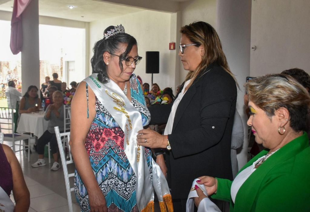 La ceremonia tuvo lugar en un salón, donde Micaela Fernández Pérez de 61 años de edad y miembro del club “Alitas de Libertad” de la colonia Hogares Obreros, fue coronada como Reina del Adulto Mayor 2024, luego de participar en un certamen previo. «Es para mí un honor ser coronada y representar a mi municipio y vivir este sueño, además de poder representar a las y los adultos mayores del municipio, agradezco a todos por su apoyo”, destacó al ser alentada por su familia y amigos con visible emoción y gratitud.