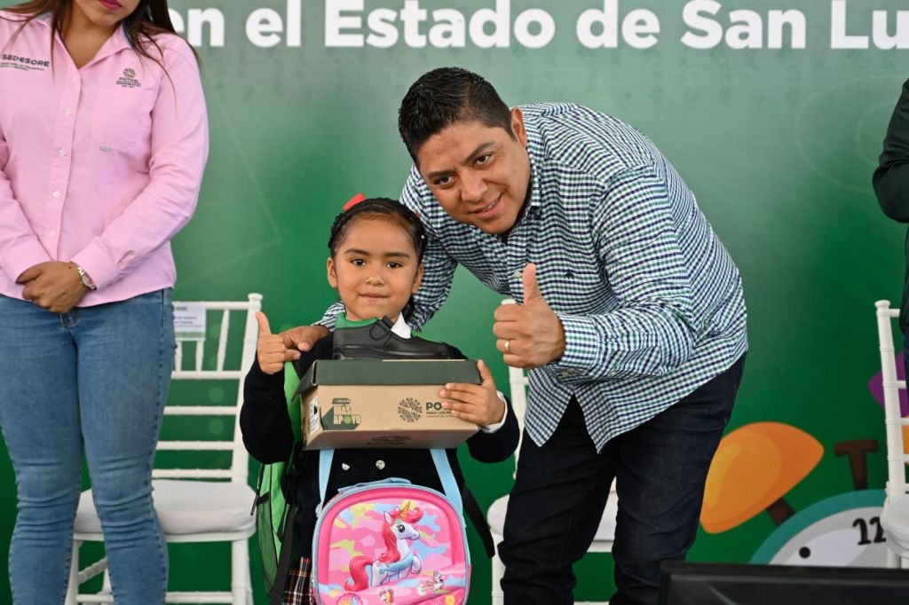 Para brindar más apoyo a las familias, generar un ahorro en sus gastos por el arranque de clases y motivar a las niñas, niños y jóvenes para continuar sus estudios, este jueves, el Gobernador de San Luis Potosí, Ricardo Gallardo Cardona, continuó con la entrega de mochilas, útiles y zapatos escolares del programa Potosí para la Educación, en el municipio de Santa María del Río, donde más de cinco mil alumnas y alumnos resultaron beneficiados.