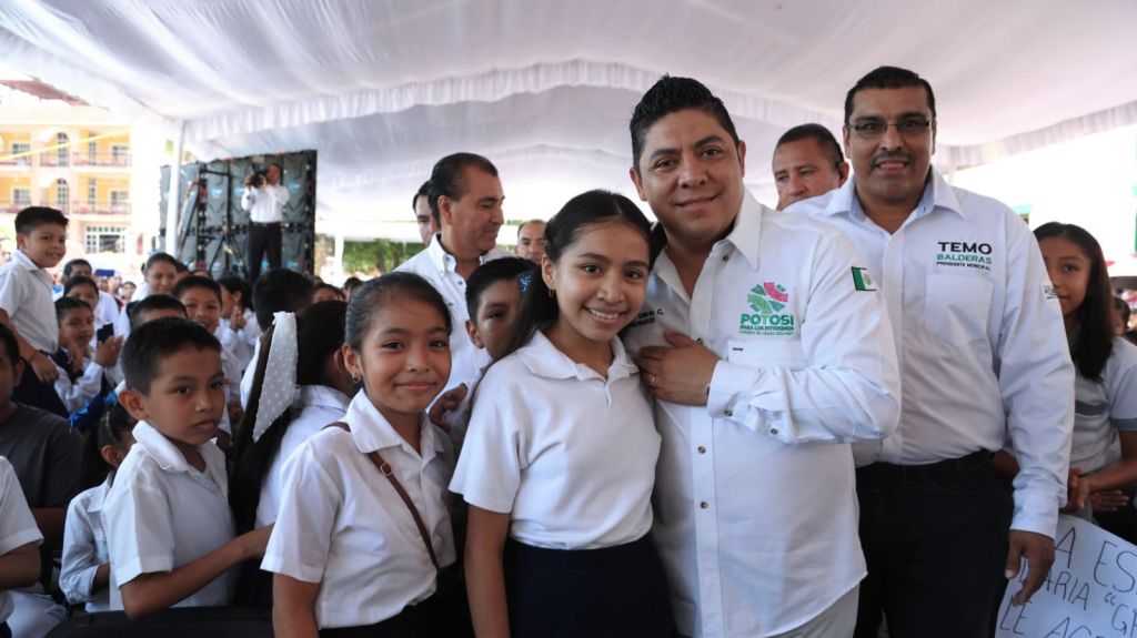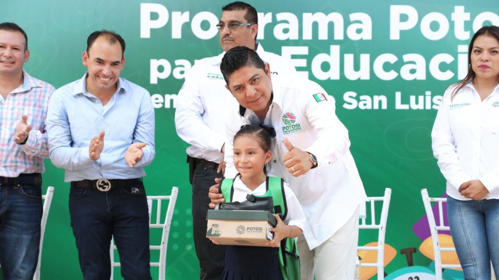 Al continuar llevando más apoyo a alumnas y alumnos de las cuatro regiones, el Gobernador de San Luis Potosí, Ricardo Gallardo Cardona, entregó en Aquismón el programa Potosí para la Educación, que en todo el Estado beneficiará a más de medio millón de niñas, niños y jóvenes, con mochilas, útiles, zapatos y cuadernos de trabajo, facilitando las herramientas básicas durante este regreso a clases y que las familias obtengan un considerable ahorro en los gastos que representa.