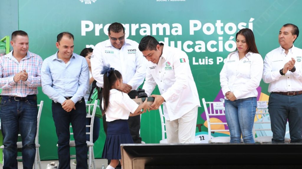 El programa Potosí para la Educación entrega actualmente en todo el Estado, mochilas, útiles, zapatos y cuadernos de trabajo para que la niñez y la juventud potosinas tengan elementos que fomenten la dedicación y entusiasmo hacia el estudio, y que incidan en la disminución de la deserción escolar y el rezago educativo, además de beneficiar a la economía de las familias.