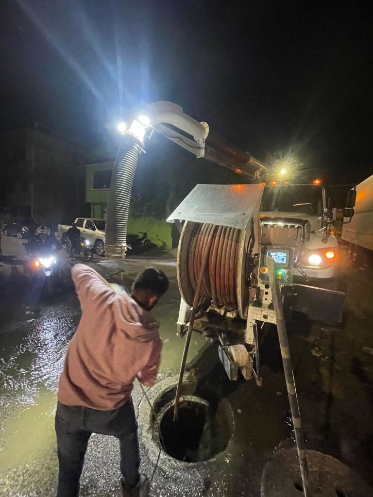 Por la noche, una cuadrilla de trabajo atendió el reporte con un camión de limpieza a succión realizando maniobras de desazolve sobre una línea de 150 metros de drenaje de la que se extrajo un tapón de desechos biológicos de ganado y basura.