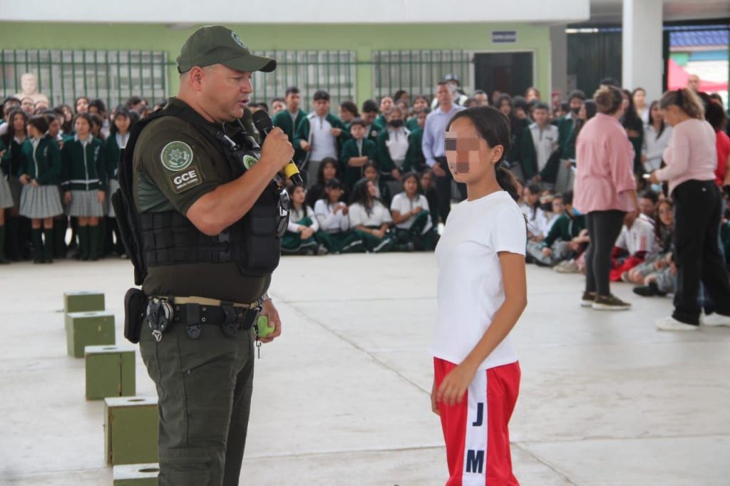 Durante el evento, se realizó una demostración del agrupamiento canino K9 de la Guardia Civil Estatal (GCE), que incluyó ejercicios de obediencia básica, detección de sustancias prohibidas, guardia y protección, así como la búsqueda de objetos, frente a decenas de estudiantes que presenciaron con asombro el acto.