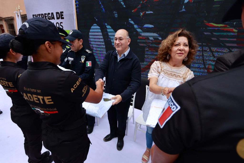 Durante el evento, Galindo Ceballos hizo entrega de siete constancias y estímulos económicos en la categoría “Policía del Mes” correspondientes a los meses de enero a julio del 2024, además de entregar simbólicamente uniformes de la más alta calidad a diversos grupos de la SSPC y que se harán llegar a alrededor de mil agentes que a diario realizan la tarea de cuidar a la población.