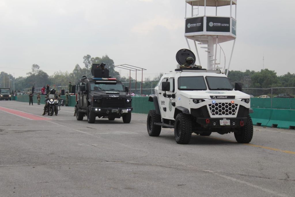 Como parte de la última entrega de vehículos de alta gama, realizada el pasado 7 de agosto, en cumplimiento con la visión del Gobernador del Estado Ricardo Gallardo Cardona, de acercar más apoyo en seguridad y brindar tranquilidad a las familias potosinas, desfilarán unidades línea Durango, Frontier y Charger, que abonan a la fuerza motriz de la corporación, para la prevención de hechos delictivos.