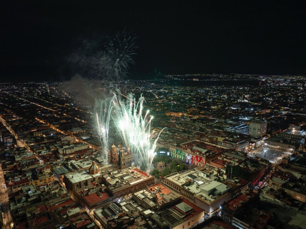 Con fuegos artificiales, una verbena con antojitos mexicanos y al ritmo de los éxitos Grupo Bronco en plaza de Armas, las y los potosinos, así como visitantes nacionales y extranjeras celebraron el CCXIV Aniversario del Grito de Independencia de México, el domingo 15 de septiembre.