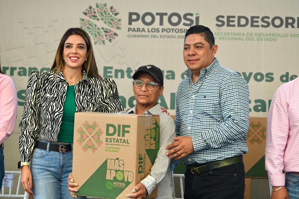 Más de 222 mil familias de la región Centro, recibirán en sus hogares el nuevo programa de Seguridad Alimentaria, informó el Gobernador de San Luis Potosí Ricardo Gallardo Cardona, al entregar más de mil cajas con 20 kilogramos de alimentos en la colonia Guanos, para brindar más apoyo a las y los potosinos que más lo necesitan y ampliar las oportunidades de nutrición a niñas, niños, adolescentes y personas adultas mayores, con una dieta sana y suficiente.