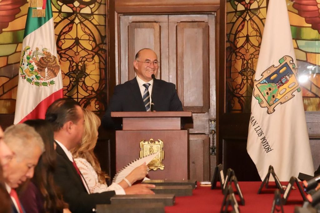 En Sesión Solemne, ante representantes de los tres Poderes, de exgobernadores, del Cabildo 2024-2027, y personalidades invitadas, el Alcalde Capitalino resaltó la altura política y la sintonía en acciones y programas para transformar la ciudad, así como la vida de la ciudadanía. Además de tomar decisiones para impulsar una evolución institucional para estar más cerca de las potosinas y potosinos y acortar la marginación, asimismo de dictarse políticas transversales y a favor de la familia, de género y en derechos humanos. También destacó la visión de Gobierno con programas como Vialidades Potosinas y la Ruta de la Salud, además del mejoramiento de servicios municipales