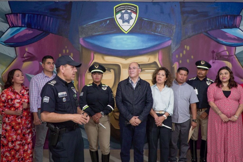 El alcalde Enrique Galindo Ceballos llevó a cabo la develación del mural “Ángeles Protectores” en el edificio central de la Secretaría de Seguridad y Protección Ciudadana. Esta obra, creada por el muralista potosino Jober, rinde homenaje a la dedicación y sacrificio de nuestros agentes del orden, destacando su compromiso con la seguridad y el bienestar de la comunidad.