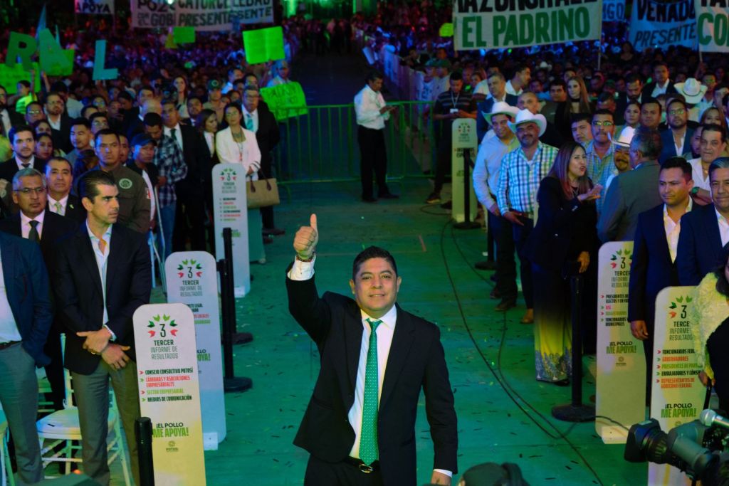El gobernador de San Luis Potosí Ricardo Gallardo presentó su Tercer Informe de Gobierno en el municipio de Matehuala S.L.P. desde el Parque de las Camelias en estos tres años de trabajo destacaron los apoyos sociales con el Programa de Seguridad alimentaria salud, infraestructura con nuevas carreteras y remodelacion de Colonias, inversión de nuevas empresas internacionales, transporte urbano con una nuevas Rutas y disminución en percepción de seguridad en el estado.