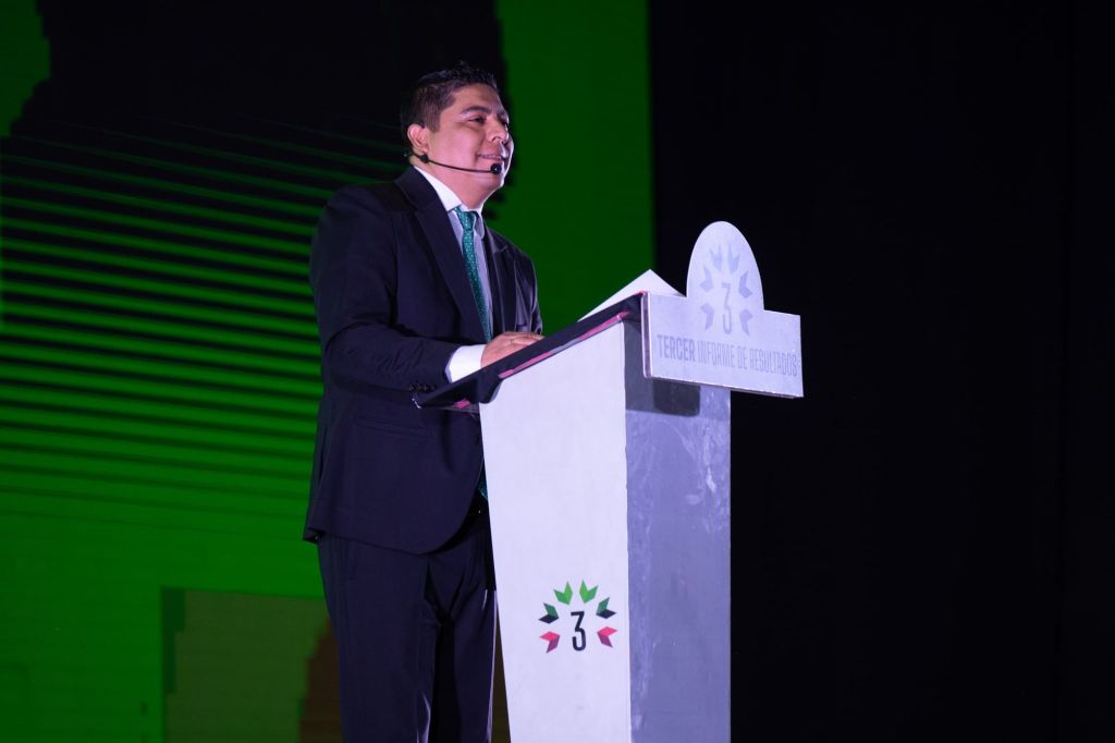 «Se han entregado becas de seguridad alimentaria, becas adultos mayores inetrenet público transporte gratuito y 600 mil licencias de conducir 90 mil placas gratis, además se le sumo el apoyo más de 50 mil cisternas por el desvasto de agua del interapas, con ello se sumo las consultas medicas y medicinas con la Clínica Rosa y se invirtieron más de 15 mil millones de pesos nueva sala de hemodialisis en la clínica 50 del Imms, la unidad estatal de cirugía extra muros» señaló