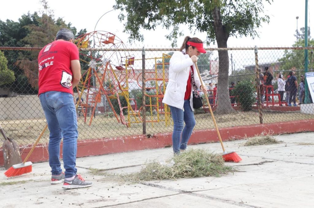 Durante la jornada dominical, directores y trabajadores municipales estuvieron en la Colonia del ISSSTE, donde junto con los vecinos realizaron labores de limpieza, pintura, mejoramiento del alumbrado, rescate de áreas verdes y espacios deportivos.