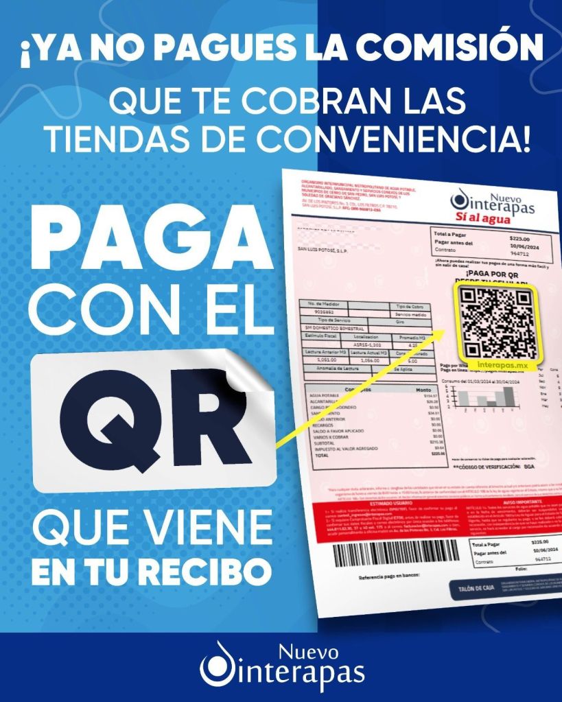 SLP.- Con la aplicación InterAppas Móvil, el uso del código QR o el pago de los servicios de agua en la página web del Organismo, los usuarios no pagan el cobro de comisiones que obligan las tiendas de conveniencia y que van de 12 hasta 15 pesos por cada recibo pagado.