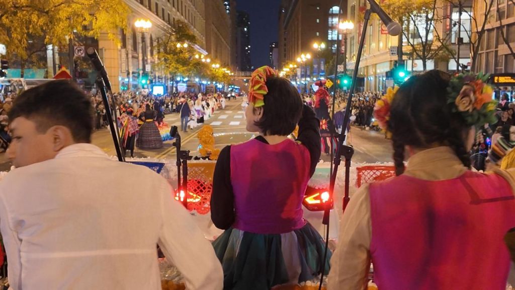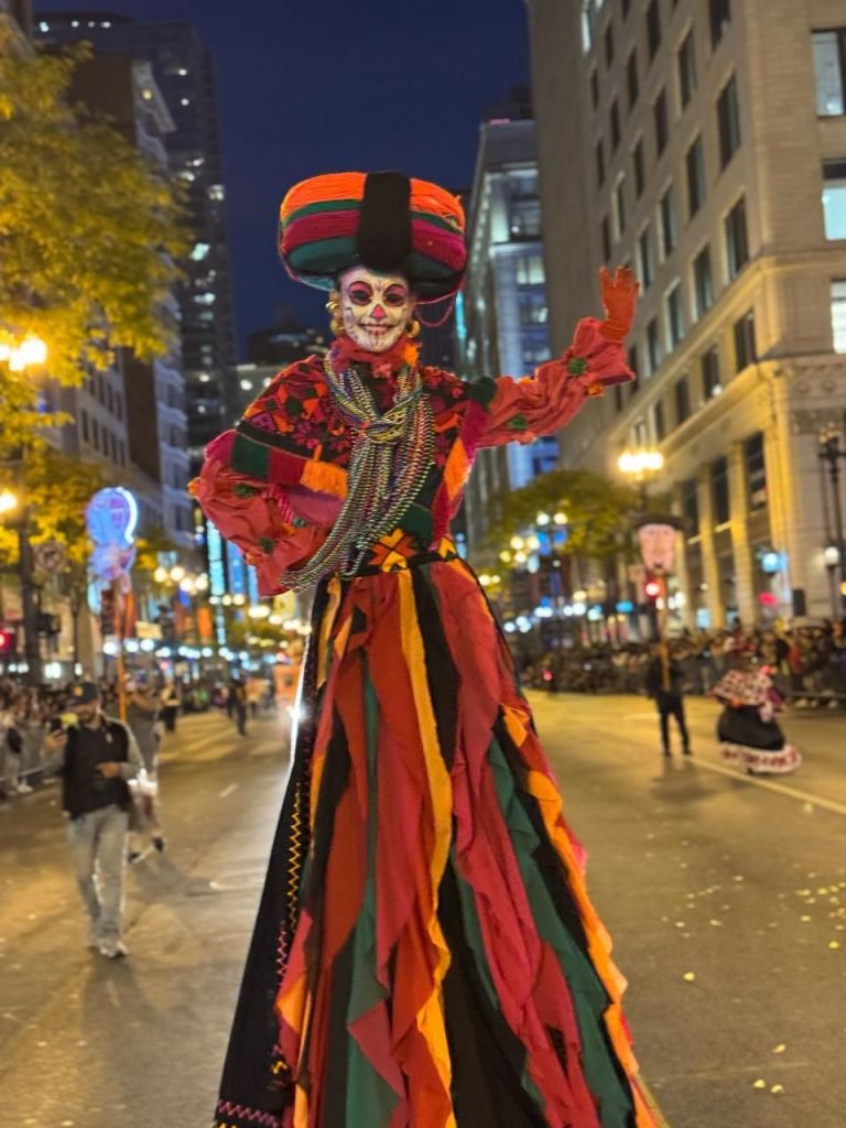 El Baile de los Matlachines, una danza llena de historia y espiritualidad que simboliza la conexión entre lo terrenal y lo divino; así como el destape de los Huehues, figuras emblemáticas del Xantolo, estuvieron presentes en el desfile LUMA8 Arts in the Dark, en Chicago, Illinois, donde cautivaron a mexicanos radicados en esta ciudad de Estados Unidos y a extranjeros.