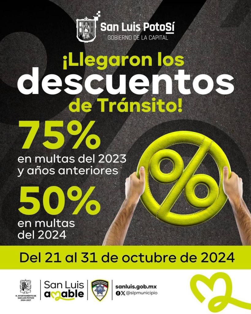 Con respecto de las multas de tránsito, durante la Campaña de Regularización de Contribuciones Municipales, el descuento será del 75 por ciento del 21 al 31 de octubre.