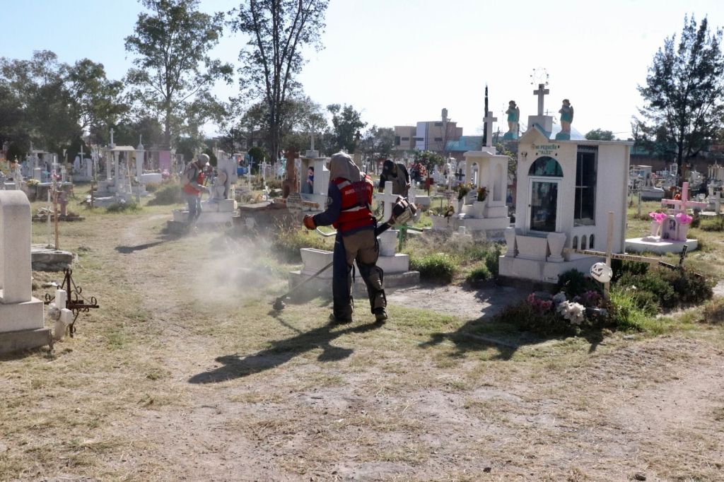 En el caso del Panteón Españita, el Director de Servicios Municipales, Christian Azuara, informó que se han retirado toneladas de basura y maleza, además de mejorar el alumbrado con 15 luminarias doble brazo, que iluminan tanto al interior como al exterior del cementerio.