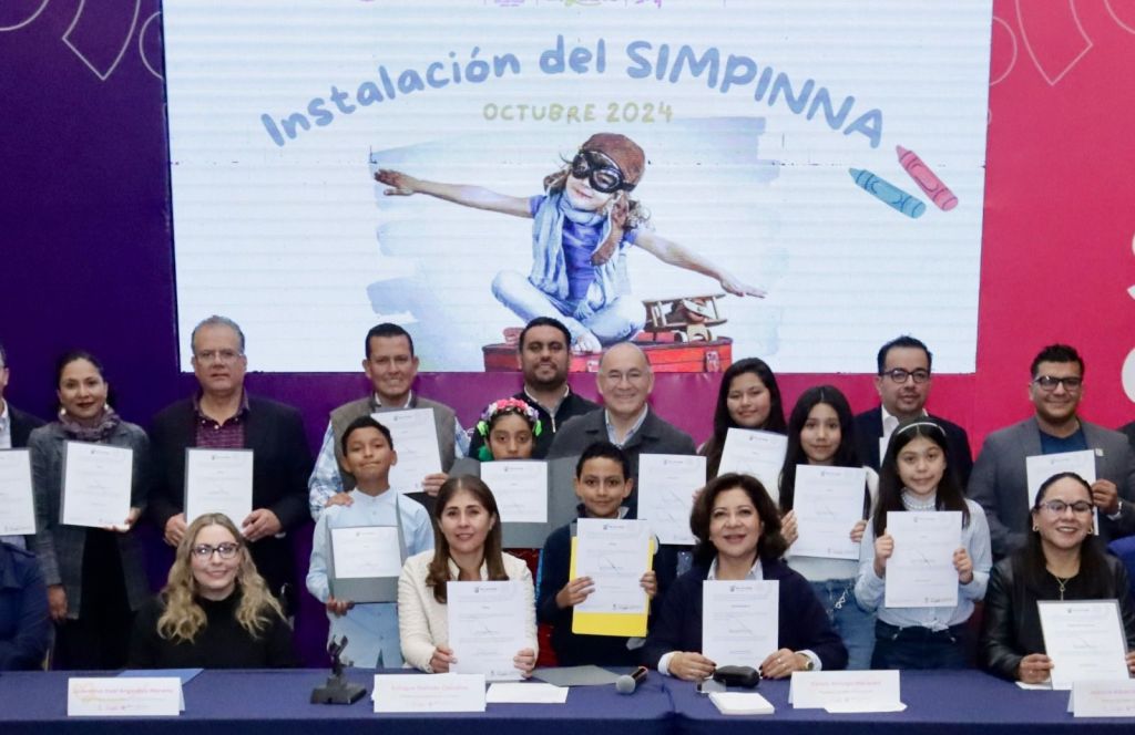 SLP.- Con el objetivo de dar voz y voto a la niñez y adolescencia potosinas, con cuyas propuestas trabajará el DIF y el Ayuntamiento Capitalino, para contribuir a escucharlos, generar espacios para su sano esparcimiento y generar políticas públicas en su favor, es que se la Presidenta del DIF Municipal, Estela Arriaga Márquez y el Alcalde Enrique Galindo Ceballos instalaron el Sistema Municipal de Protección Integral de Niñas, Niños y Adolescentes (SImpinna).
