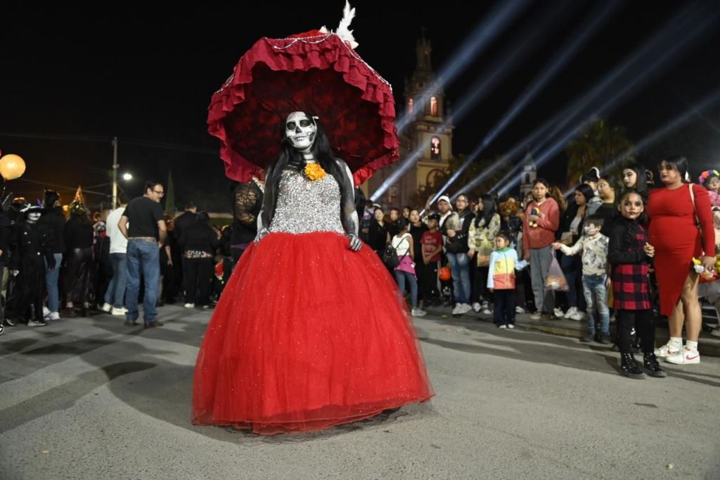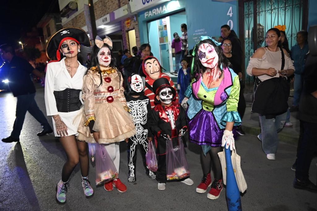* Familias enteras se congregaron en las calles para disfrutar del colorido desfile, donde niños, niñas, adolescentes y adultos de aspecto cadavérico se mezclaron con personajes escalofriantes.