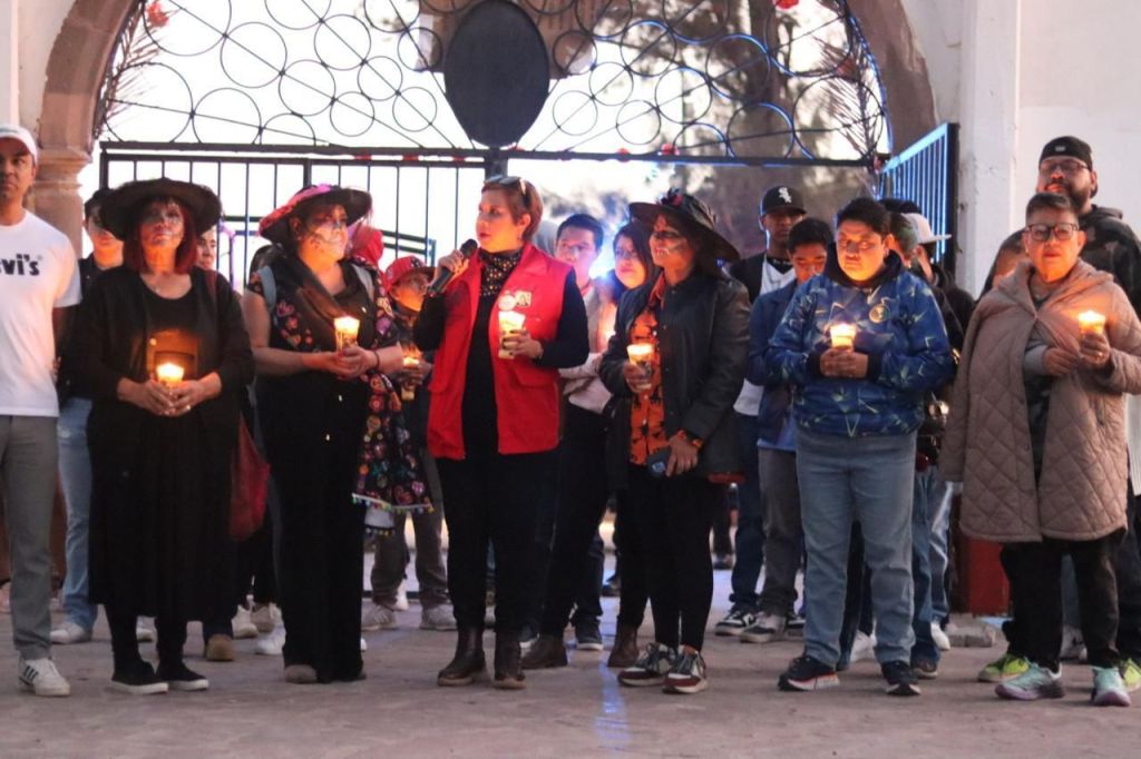 Los asistentes también tuvieron la oportunidad de participar en un recorrido por el panteón, escuchando leyendas tradicionales que enriquecen nuestra cultura. La celebración también incluyó la presentación del grupo «Ma. Guadalupe», que deleitó al público con una danza folklórica alusiva al Xantolo.