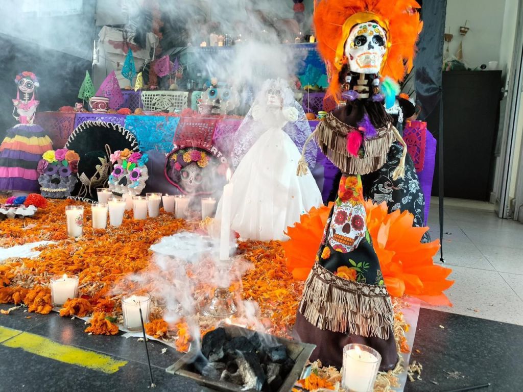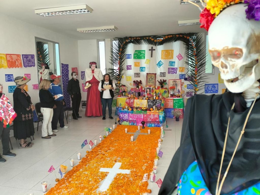 Es así que adultos mayores, niñas y niños, además de personas que acuden a los talleres y clases diversas de los Centros de Desarrollo Comunitario, conjuntaron ideas y realizaron sus altares de Día de Muertos.
