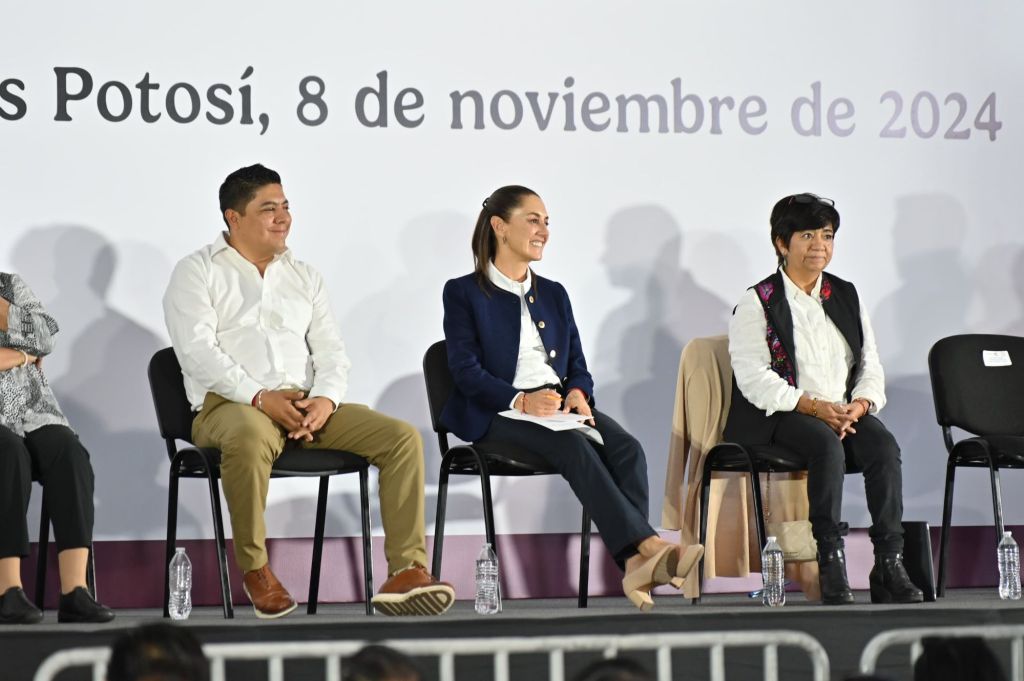 Desde la explanada La Sauceda, la Presidenta de México, destacó que trabajará de la mano con el Gobierno Estatal para seguir impulsando a las potosinas adultas mayores de 60 a 64 años, en apoyo a su economía, “porque es el tiempo de las mujeres” y dijo que seguirán acercando la posibilidad de salir adelante a quienes no la han tenido.