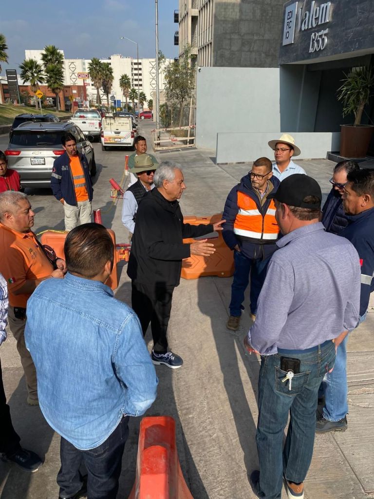 En la inspección encabezada por el director general de Interapas Jorge Daniel Hernández Delgadillo, junto con el director de Protección Civil Adrián Cortázar Ruiz, el director de Obras Públicas del Gobierno de la Capital Eustorgio Chávez Garza y desarrolladores del Pedregal, revisaron la parte baja del sitio del colapso y los sótanos de los edificios que flanquean el lote para constatar sus condiciones y descartar indicios de riesgo; así como proponer trabajos de contención y reparación, para evitar riesgos a a la población.