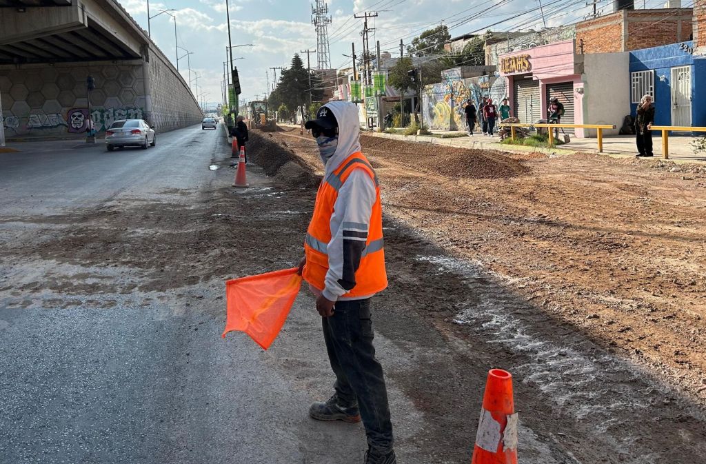 El Ayuntamiento de Soledad de Graciano Sánchez, en colaboración con el Gobierno del Estado, avanza rápidamente en la rehabilitación de la lateral del bulevar Valle de los Fantasmas en las colonias Hogares Ferrocarrileros en sus tres secciones, cumpliendo con el plan de mejora de la infraestructura urbana que externaron el Gobernador, Ricardo Gallardo Cardona y el Alcalde Juan Manuel Navarro, en beneficio de la seguridad vial de miles de automovilistas y peatones.