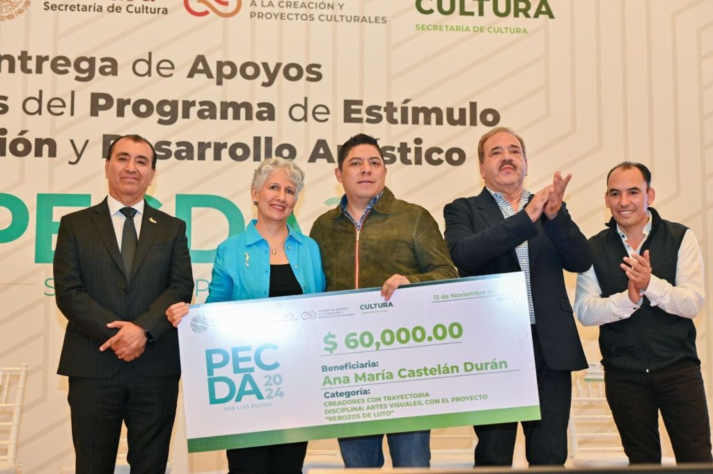Ante la entrega de estímulos económicos para proyectos artísticos y culturales por parte del Gobernador del Estado Ricardo Gallardo Cardona, para promover el desarrollo cultural en la entidad donde el Mandatario Estatal, se comprometió a redoblar los apoyos y duplicar el número de personas beneficiarias y el monto económico entregado, artistas de diversas disciplinas agradecieron la entrega del Programa de Estímulo a la Creación y Desarrollo Artístico.