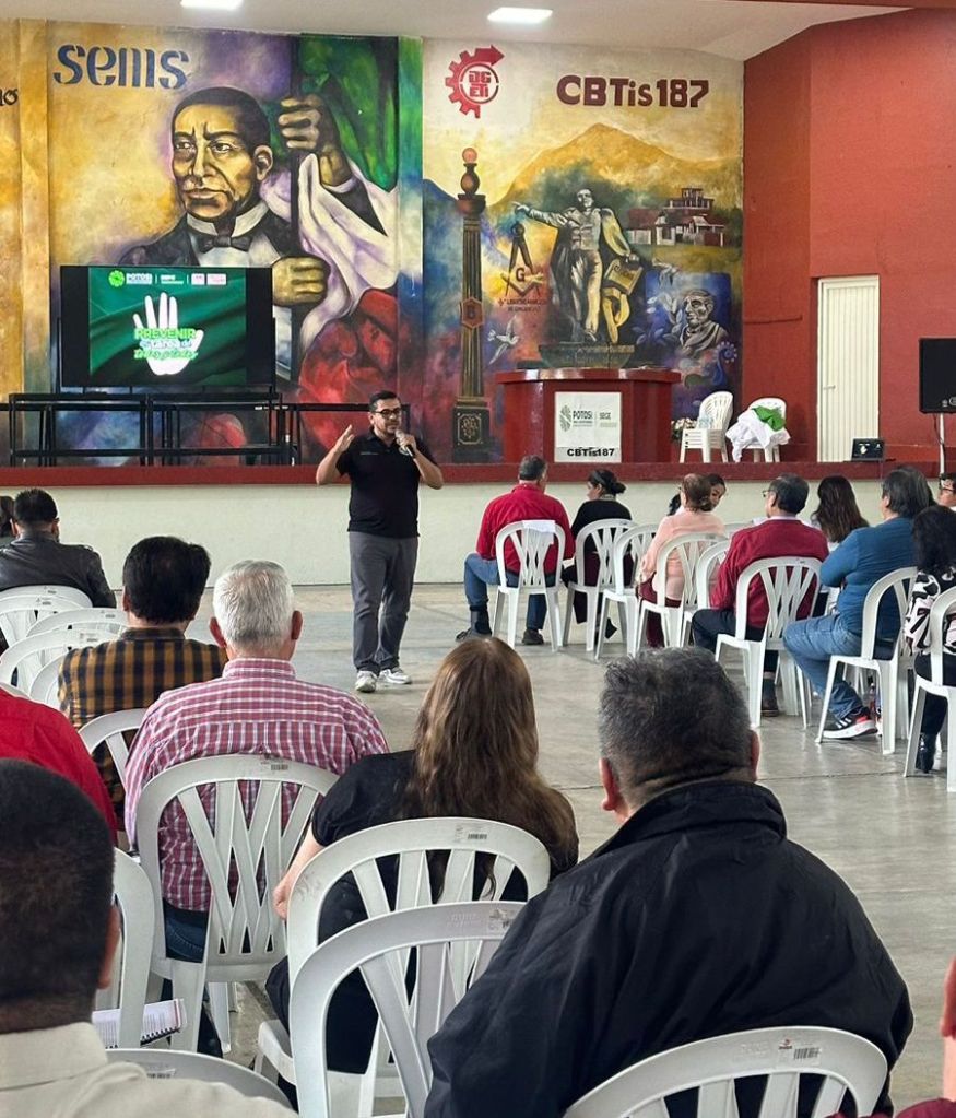 En seguimiento a la estrategia de prevención y de educación que impulsa el Gobernador del Estado, Ricardo Gallardo Cardona, la Unidad de Prevención del Delito y de Género, en coordinación con instituciones gubernamentales, realizó una capacitación a estudiantes y personal académico del Centro de Bachillerato Tecnológico Industrial y de Servicios (Cbtis) 187 de Tamazunchale, dio a conocer la responsable del área, Paola Segura García.