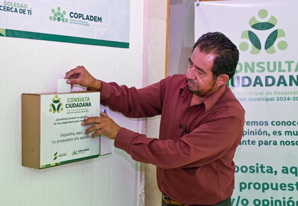 Además de los buzones, la ciudadanía podrá participar en el Foro de Consulta Popular, encuestas directas que se aplicarán en diversos puntos del municipio, y a través de plataformas digitales, como la Página web oficial del Ayuntamiento (www.municipiosoledad.gob.mx), Redes Sociales y un formulario de Google que estarán disponibles para que todas las personas puedan expresar sus ideas y sugerencias.