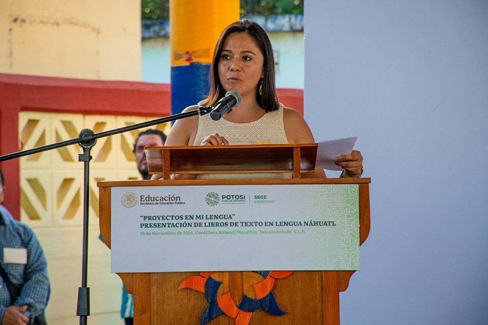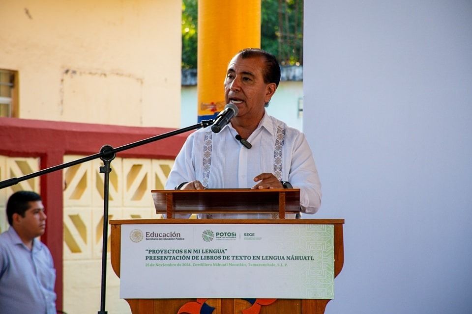 En un evento protocolario en Tamazunchale, al que acudió la subsecretaria de Educación Básica del Gobierno de México, Angélica Noemí Juárez Pérez, el titular de la SEGE, Juan Carlos Torres Cedillo resaltó la importancia de la introducción y traducción de los libros de texto en náhuatl, al fomentar el respeto, la valoración y la preservación de esta lengua materna, dando seguimiento a la política educativa del Mandatario Estatal Ricardo Gallardo Cardona.