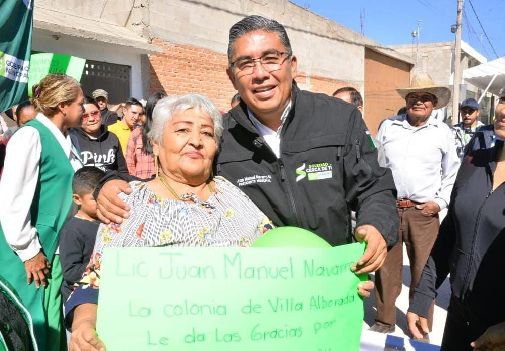 En un esfuerzo constante por mejorar la infraestructura vial del municipio y garantizar mayor calidad de vida a las familias, el Alcalde de Soledad de Graciano Sánchez, Juan Manuel Navarro Muñiz inauguró la segunda etapa de pavimentación integral de las calles Villa de la Lluvia y Circuito Boreal en la colonia Villa Alborada; con una inversión de 2.5 millones de pesos, la obra beneficia directamente a las y los vecinos de esta zona, que ahora cuentan con calles rehabilitadas, servicios sanitarios eficiente y mayor seguridad vial.